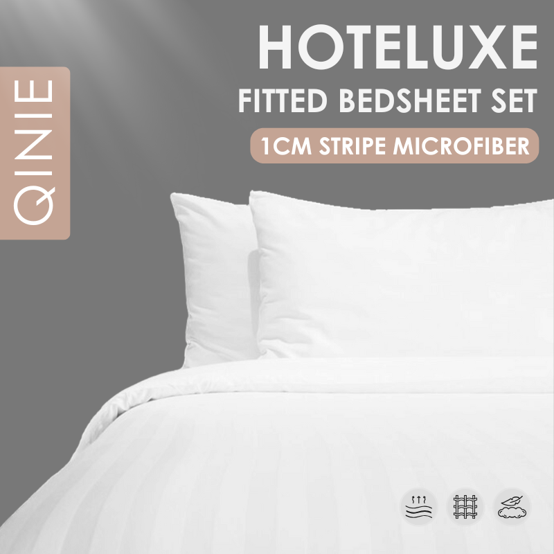The 100% Microfiber Bedsheet features a smooth, soft texture with a stylish 1cm stripe design. Made from high-quality microfiber, it offers exceptional durability, wrinkle resistance, and easy maintenance. This breathable and hypoallergenic sheet comes in white, perfect for adding a simple style to any Airbnb or bedroom.