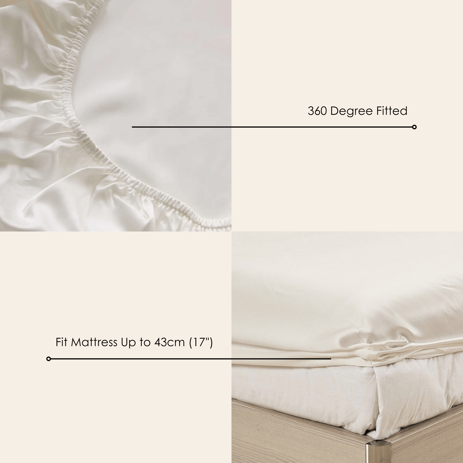 - Fitted Bed Sheet = 200cm x 200cm x 43cm